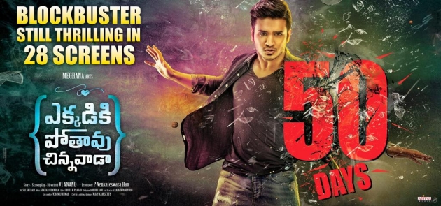 Young hero Nikhil Siddhartha's Ekkadiki Pothavu Chinnavada completed 50 days at the box office. On this occasion, actor Nikhil thanked the audience and said that they celebrate this moment by watching the film with entire cast and crew on Sunday at a Hyderabad Theatre.