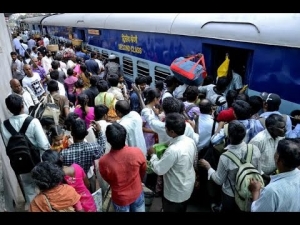 The Sankranthi rush reached to its peak on Friday. The crowd tried to enter into the Falaknuma Express leading to jostling though the police made the commuters to stand in queues.