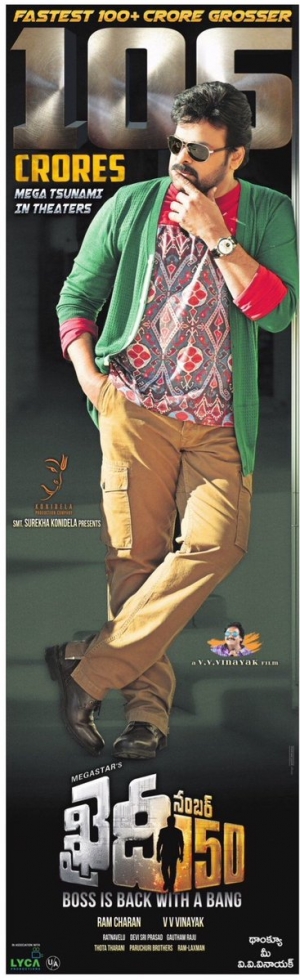 After Baahubali, Khaidi No 150 is the Fastest Telugu movie to cross 100 crores gross mark worldwide.