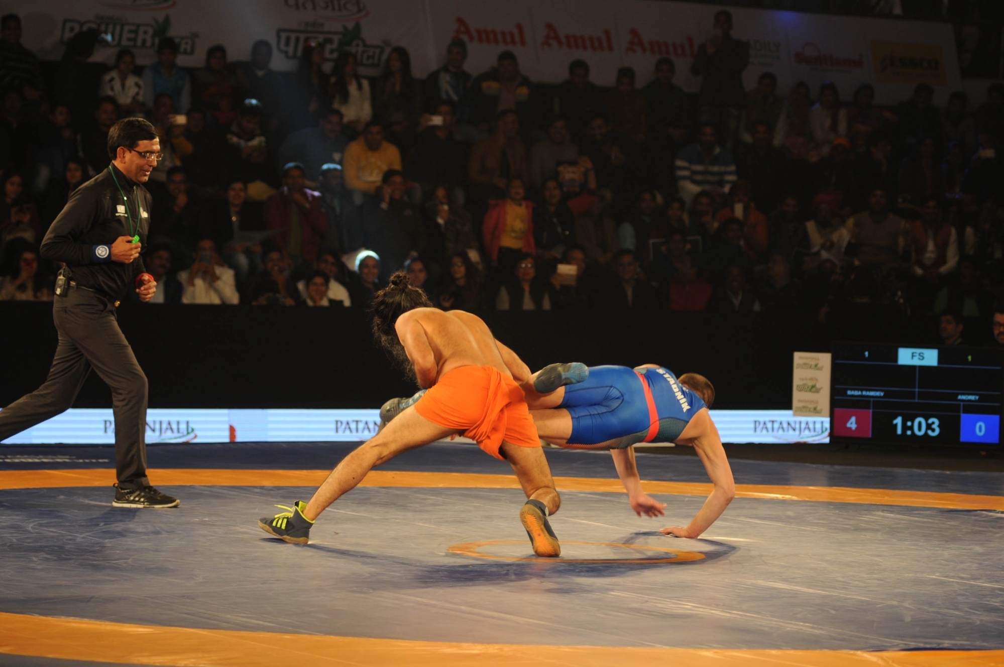 Ramdev showed wrestling acumen as he pulled out the best of technical moves such as take-down, one-leg hold and pinning down.