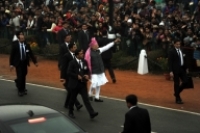 New Delhi, Jan 26 : Prime Minister Narendra Modi on Thursday appeared to have given some anxious moments to his security personnel as he decided to walk a few paces along Rajpath to wave to the cheering crowd after the Republic Day function had ended.