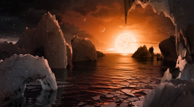 This exoplanet system is called TRAPPIST-1, named for The Transiting Planets and Planetesimals Small Telescope (TRAPPIST) in Chile.