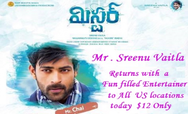Seenu Vytala's fun filled perfect family entertainer MISTER is all set for grand release in USA April 14th with 100% confirmed premiers on April 13th.