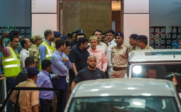 Mumbai, May 10 : Grammy Award winning Canadian singing sensation Justin Bieber arrived here early on Wednesday amidst tight security for his maiden concert in India, looking relaxed and geared up to regale Indian 'Beliebers' as part of his Purpose World Tour.