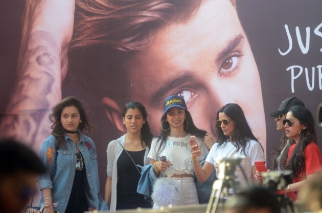 There were fans dressed in black T-shirts with 'BELIEBER' written across them, and those flaunting tees with his photographs and even others with hoardings that read "We love you Bieber" and "Meri jaan" at the venue.
