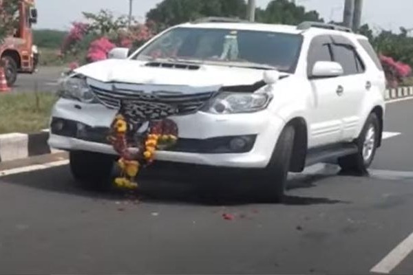 The car in which the Minister was travelling also collided but Jogi Ramesh escaped unhurt. He alighted another vehicle and left the place.
