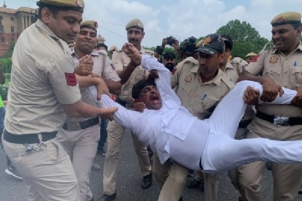 Delhi, July 27: Several Congress parliamentarians were detained near Parliament on Wednesday as they tried to carry out a protest march from Parliament house to Rashtrapati Bhawan against the questioning of their president Sonia Gandhi by the Enforcement Directorate.