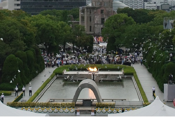 At a memorial ceremony held at the Peace Memorial Park, Hiroshima Mayor Kazumi Matsui cautioned in the Peace Declaration that dependence on nuclear deterrence is gaining momentum in the world.