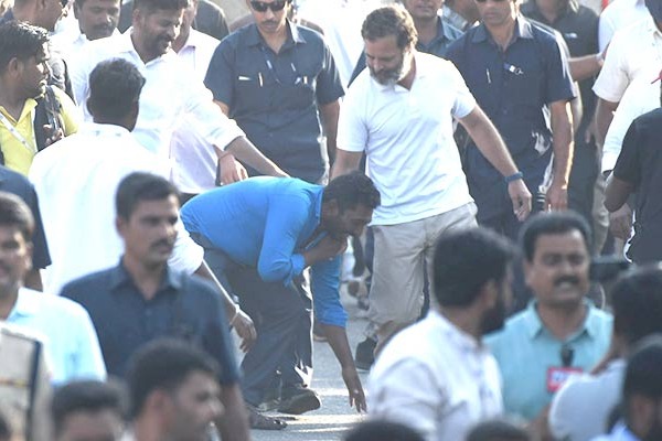 Ranga Reddy, November 1: A man breaches security and touches Congress leader Rahul Gandhi’s feet had shocked everyone. Security persons immediately alerted and dragged him away. Later the let him go after identifying him as a Congress activist.