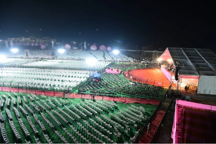 Hyderabad, Jan 17:  The stage is set for Bharat Rashtra Samithi's inaugural public meeting at Telangana's Khammam on Wednesday.