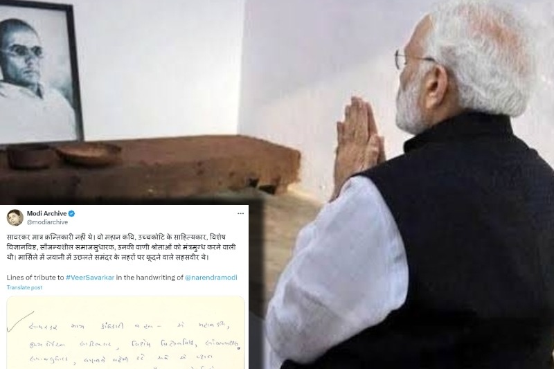The Modi Archive Twitter handle on Monday shared PM Modi's homage to Veer Savarkar in the former's own handwriting, which soon went viral.
