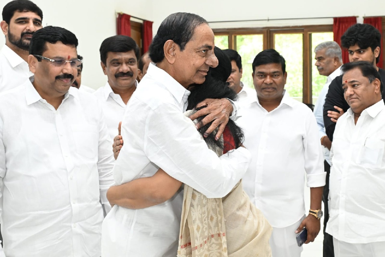 Hyderabad, Aug 29 : Bharat Rashtra Samithi (BRS) MLC K. Kavitha, who walked out of jail after more than five months in the Delhi excise policy case, met her father and party President K. Chandrasekhar Rao. on Thursday.