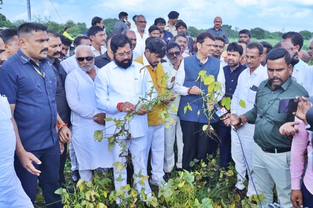 Both Shinde and Fadnavis met the villagers and listened to their grievances on how devastating rain caused havoc in their fields.