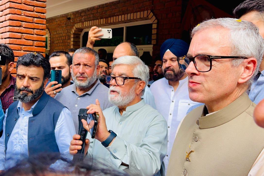 Lok Sabha member, Syed Ruhullah Mehdi, NC leader, Aga Mehmood, party treasurer, Shammi Oberoi and NC provincial secretary, Shaukat Mir accompanied Omar to the returning officer’s office when he went to Budgam.