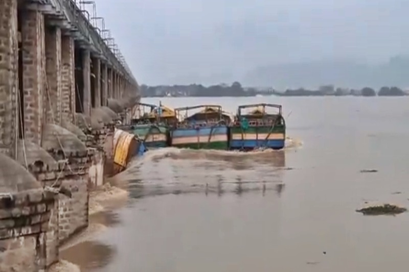 Water Resources Minister Nimmala Ramanaidu alleged that there was a conspiracy behind the incident. He said the investigations were on due to suspicion that boats were deliberately left in the river to damage the barrage.