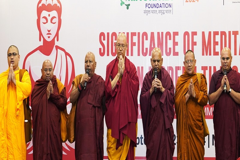 Mumbai, Sep 23 : Prominent Buddhist monks, religious leaders and a delegation of Indian Minorities Foundation (IMF) led by convener and Rajya Sabha MP Satnam Singh Sandhu performed Vipasana meditation at the Nehru Science Centre in Mumbai on Monday.