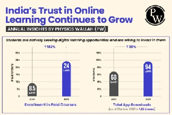 Hyderabad, 08 January 2023: Physics Wallah (PW), India’s leading test-preparation platform conducted an internal data analysis on a sample size of 27 lakh students from the PW App for the period between January 2022 and December 2023, along with 4 crore subscribers across its YouTube channels for the period from January 2023 to December 2023, and shared insights revealing that students' trust in online learning continues to grow in the post-pandemic era. These insights are an overview of the trends and patterns in India's online learning landscape over the past year (2022-23).