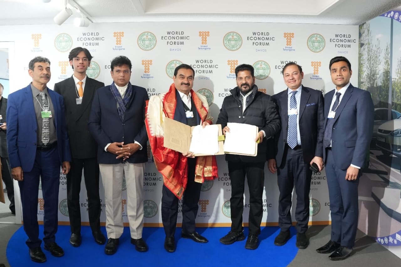 Photographs pertaining to Honourable Chief Minister Revanth Reddy meeting with 1) Hon’ble Chief Minister of Telangana Sri A. Revanth Reddy met with the Chairman of Adani Group, Mr. Gautam Adani at the World Economic Forum in Davos.