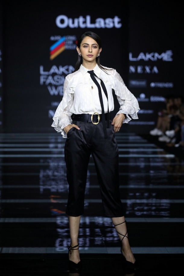 The “LongLiveBold” collection for the fashion-conscious dresser was curated by celebrity stylist Mohit Raj. For a show stopping entry was the beautiful Bollywood diva, Rakul Preet in a sheer white pleated shirt and tie teamed with casual cropped black trousers with a trend setting bold belt. There were vibrant pops of colours, prints, lots of great impressive statement sleeves and floral fantasies that made the collection a ‘must have’ in all wardrobes.