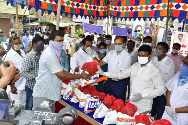 పండ్లకు ఇతర దేశాలకు ఎగుమతి చేస్తున్నామన్నారు. ఆక్వా రంగాన్ని ఆదుకుంటున్నామన్నారు. కరోనా కట్టడికి ప్రభుత్వం చిత్తశుద్ధితో పని చేస్తుంటే ప్రతిపక్షాలు పని కట్టుకొని మరి తప్పుడు ప్రచారం చేస్తుందని మండిపడ్డారు. చంద్రబాబు హైదరాబాద్ లో కూర్చొని స్కైప్ టీవీల్లో సూక్తులు చెబుతున్నారని ఎద్దేవా చేశారు. తీరు మార్చుకోకపోతే ప్రజలే గుణపాఠం చెబుతారని మంత్రులు హెచ్చరించారు. ఈ కార్యక్రమంలో హార్టికల్చర్ కమిషనర్ చిరంజీవి, ఏడి దయాకర్, ఎన్జీవోస్, వైఎస్ఆర్సిపి పార్టీ శ్రేణులు పాల్గొన్నారు.
