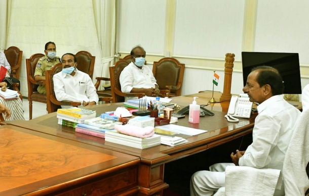 The CM held a high-level review meeting at Pragathi Bhavan here on Monday after his videoconference with Prime Minister Narendra Modi. Medical and Health Minister Sri Etela Rajender, Home Minister Sri Mohammed Ali, TRS Parliamentary Party leader Dr K Keshav Rao, Government’s Chief Advisor Sri Rajiv Sharma, Chief Secretary Sri Somesh Kumar, DGP SrI Mahender Reddy, Principal Secretaries Sri Narsing Rao, Ms Shanti Kumari, GHMC Commissioner Sri Lokesh Kumar, Former Speaker Sri Madhusudhan Chary and others participated.