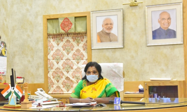 Telangana Governor Tamilisai has interacted with the teaching staff of Kakatiya university and its affiliated colleges via video conference today. From today onwards, she would like to interact with all universities in the state on every alternative day. Earlier the Governor has briefed the media through virtual conference and explained about her two-week program with higher education authorities.