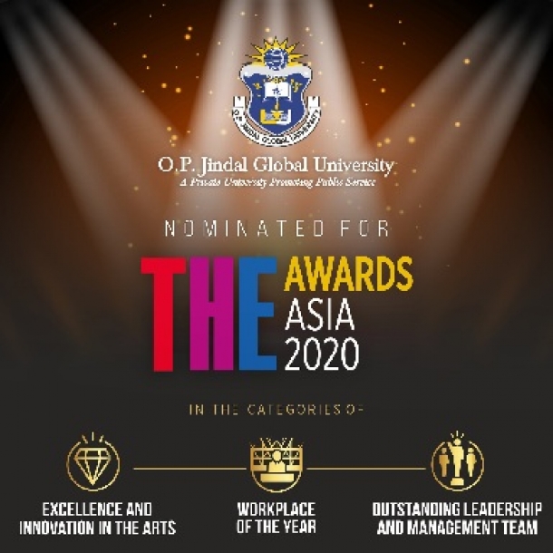 Hyderabad, 3 June 2020: O.P. Jindal Global University (JGU) has become the only University from India that has been shortlisted by an influential international higher education ranking agency, Times Higher Education (THE) for its Asia Awards 2020 in the categories of "Outstanding Leadership and Management Team" and "Excellence and Innovation in the Arts".