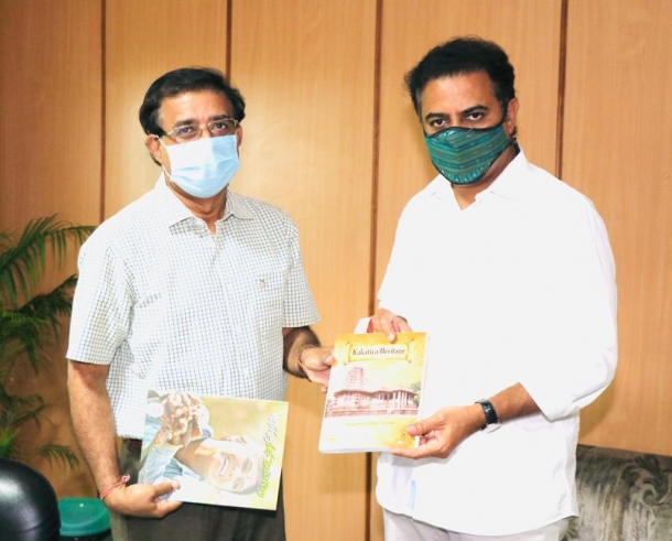 B P Acharya, IAS, DG, Dr. MCR HRD Institute & Spl Chief Secretary presented a copy of the book, entitled “Kakatiya Heritage”, today to KT Rama Rao, Hon’ble Minister for IT, Industries, & MAUD.