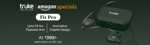 - Gear up for an Immersive Music Experience as truke unveils its latest True Wireless Earbuds truke Fit Pro on Amazon at a launch price of Just Rs. 999 from 6th July, 12 Noon.