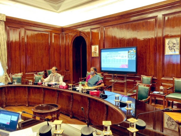 Union Minister for Finance & Corporate Affairs Nirmala Sitharaman chaired a meeting to review the implementation of Pradhan Mantri Fasal Bima Yojana (PMFBY) through video conferencing here today. The meeting was attended by Shri Debasish Panda Secretary (Financial Services), Shri Sanjay Agarwal, Secretary DAC&FW, senior officials from Department of Financial Services, Department of Agriculture, Cooperation, and Farmers Welfare (DAC&FW), General Insurance Companies implementing PMFBY and Scheduled Commercial Banks.