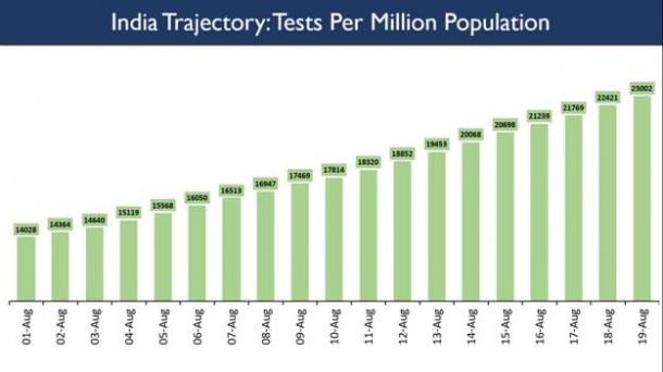It is only by aggressive testing that positive cases can be identified, their contacts tracked and isolated as well as prompt treatment can be ensured through timely medical care. The sustained level of high testing has played a key role in India’s increasing rate of recovery, widening gap between the recovered and active cases, and also progressively declining fatality rate.