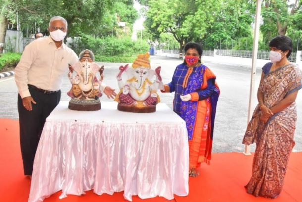 Telangana Governor distributes clay Ganesha idols to Raj Bhavan staff