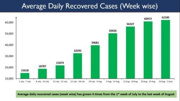 The number of recovered patients has grown 4 times from the first week of July to the last week of August 2020.