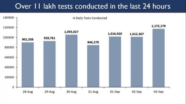 This demonstrates an exponential increase in the daily COVID-19 testing in the country. From conducting merely 10 tests per day on 30th January, the daily average has crossed more than 11 lakhs today.