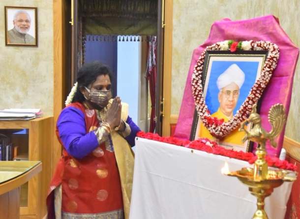 Earlier, the Governor offered floral tributes to the portrait of former president of India Sarvepalli Radhakrishnan, whose birth anniversary is celebrated as the Teachers Day.