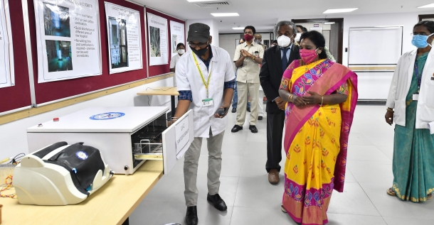 Later, she went round the medical exhibits exhibition at the ESI Hospital, where many innovative medical equipments were put on display.