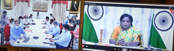 Dr. Tamilisai Soundararajan was reviewing the socio-economic and health conditions of the people living in schedule areas in the State through a video conference from Puducherry, where she is holding an additional charge as the Lt. Governor.