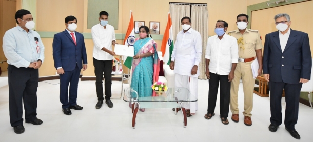 The student, who came along with his father, Shekhar Goud and his grandfather Narsimhulu Goud to the Raj Bhavan, was visibly moved by the gesture of the Governor.