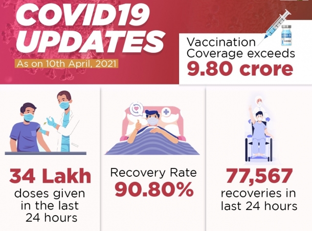 Cumulative Vaccination Coverage exceeds 9.80 Crores with over 34 Lakh doses given in the last 24 hours