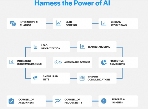 - Caters to the entire admissions cycle of educational institutions from outreach to onboarding