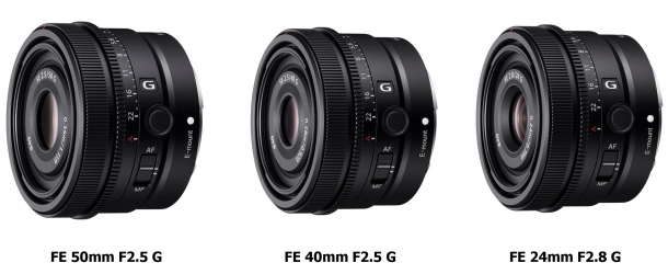 deliver a focal length perfect for any shoot. With the 50mm best for portraits, the 40mm optimal for still or movie snap shooting, and the 24mm ideal for landscapes, their intuitive operability and superb build quality makes them a fantastic set of three. The three lenses are of the same size (68mm diameter x 45mm), have the same filter diameter (49mm) and are almost the same weight (FE 50mm F2.5 G 174g, FE 40mm F2.5 G 173g and FE 24mm F2.8 G 162g) and internal focus making the lens interchange easy – even when using a gimbal. They feature the same stylish exterior design, but focal lengths are clearly marked for quick switches.