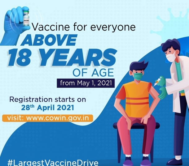 Everyone above the age of 18 shall be eligible for COVID19 vaccination from May 1st - Registration starts on April 28