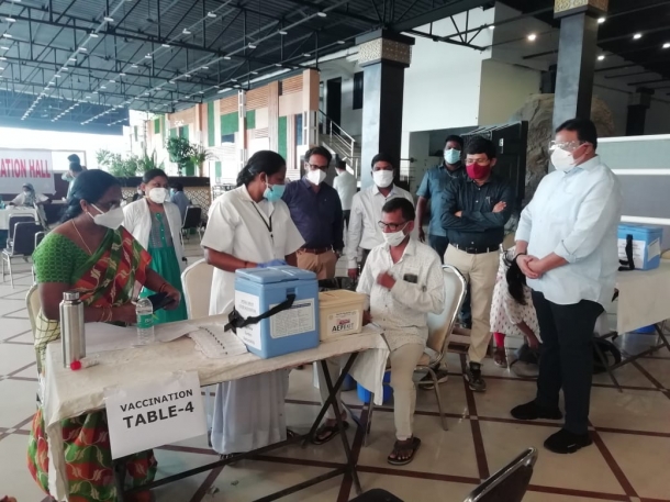 రాష్ట్ర విద్యాశాఖ మంత్రి సబితా ఇంద్రారెడ్డి సరూర్ నగర్ ప్రాథమిక ఆరోగ్య కేంద్రాన్ని, దిల్ సుఖ్ నగర్ రాజధాని థియేటర్ పక్కన ఏర్పాటు చేసిన వ్యాక్సినేషన్ కేంద్రాన్ని సందర్శించారు. రాష్ట్ర ప్రభుత్వ ప్రధాన కార్యదర్శి సోమేశ్ కుమార్ గోషామహల్ సర్కిల్ లోని రెడ్ రోస్ ఫంక్షన్ హాల్ లో ఏర్పాటు కేంద్రాన్ని, ఖైరతాబాద్ ప్రెస్ క్లబ్ లో ఏర్పాటు చేసిన వ్యాక్సినేషన్ కేంద్రాన్ని పరిశీలించారు.