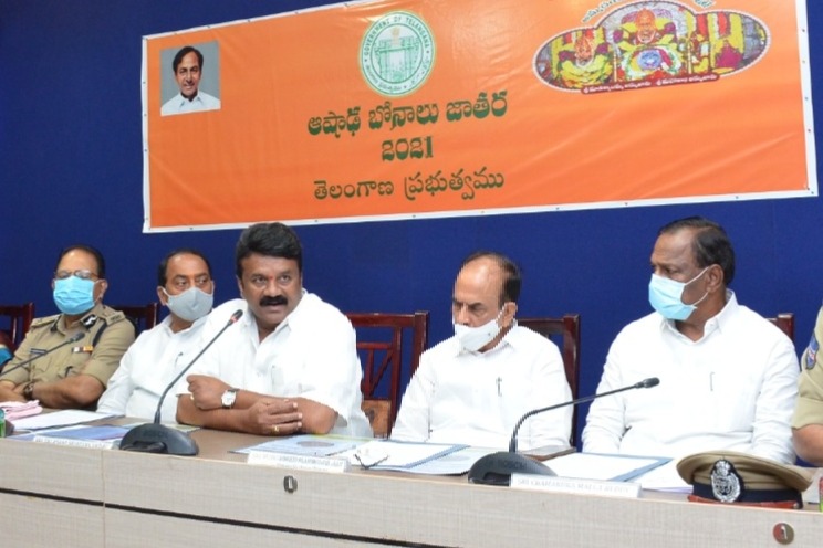 ప్రజలు కూడా తప్పని సరిగా మాస్క్ లు ధరించాలని, సామాజిక దూరం పాటించాలని కోరారు. బోనాల ఉత్సవాలను పురస్కరించుకొని ప్రధాన ఆలయాల వద్ద ప్రత్యేక వైద్య శిభిరాలను ఏర్పాటు చేయడం జరుగుతుందని చెప్పారు. ఆయా ఆలయాల వద్ద మొబైల్ వ్యాక్సినేషన్ సెంటర్ లను ఏర్పాటు చేసి కరోనా వ్యాక్సిన్ పంపిణీ చేయడం జరుగుతుందని, మొబైల్ టెస్టింగ్ సెంటర్ లను కూడా ఏర్పాటు చేస్తున్నట్లు, వీటిని సద్వినియోగం చేసుకోవాలని మంత్రి శ్రీనివాస్ యాదవ్ కోరారు.