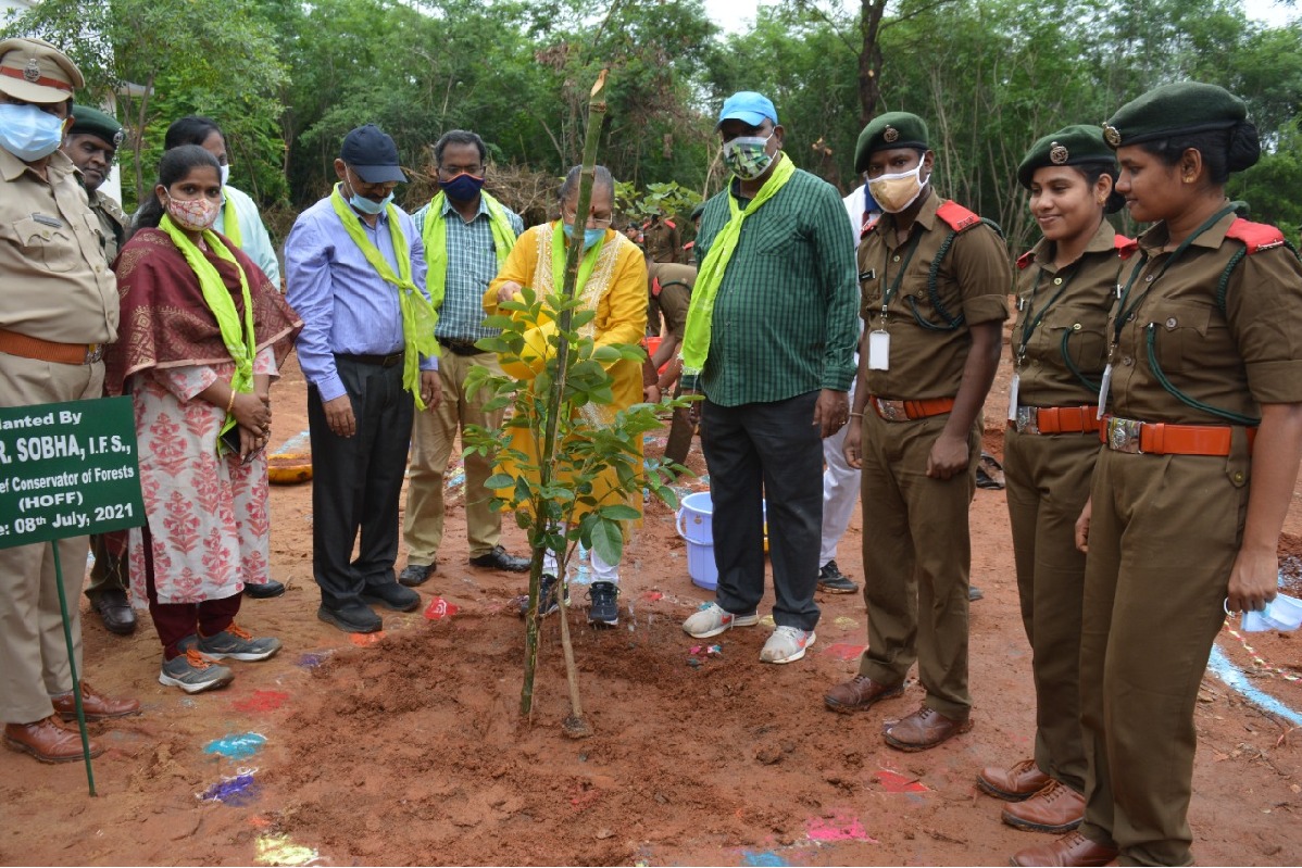 Hyderabad: Today the 7th phase of the Haritha Haram Program has been organized in Telangana State Forest Academy Dulapally, Hyderabad. The Chief Guest of the event is R. Sobha, IFS., Principal Chief Conservator of Forests & Head of Forest Force, Telangana State, P. V. Raja Rao, IFS., Director, Telangana State Forest Academy Dulapally, S. Ramesh, IFS, Addl. Director. The Deputy Directors, FROs, Trainees of Induction Training, and other staff of TSFA have participated in this program.