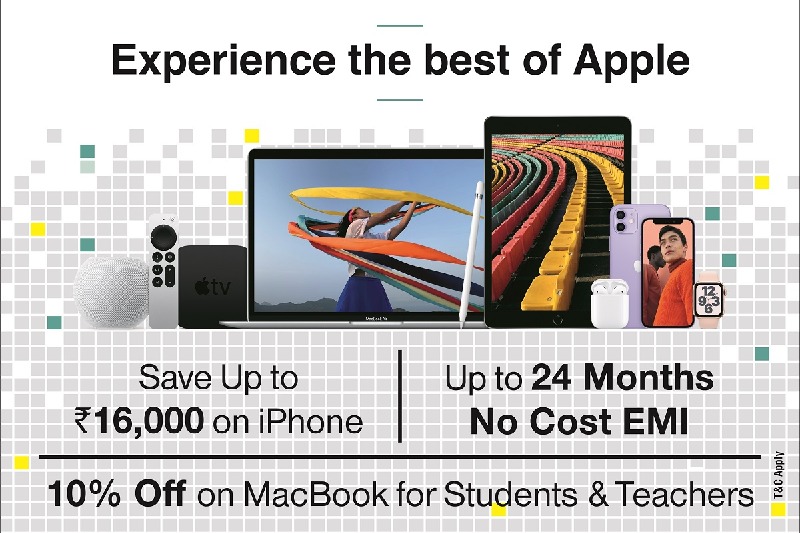 During the Apple You & Croma campaign, customers can avail of Apple products at exciting prices across every category. Offers include, MacBook Air starting at Rs. 83,990, iPhone starting Rs. 30,900, exclusive Cashback offers with HDFC Bank Cards of up to Rs. 7,000, and much more. Customers can also avail of a 24 Months No Cost EMI option, save up to Rs. 16,000 on iPhone 12 and students and teachers can avail of an exclusive 10% Off on MacBook.