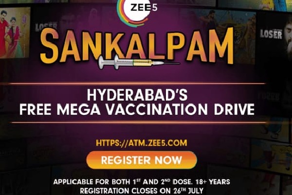 Hyderabad, 23rd July 2021: India’s largest home-grown OTT platform, ZEE5 has consistently presented content across genres and languages, thus keeping the entire nation entertained. The audience has always been at the centre of everything ZEE5 does and keeping in line with this, the video streaming platform has announced a free vaccination drive – ZEE5 Sankalpam in Hyderabad from 30th July to 8th August 2021.