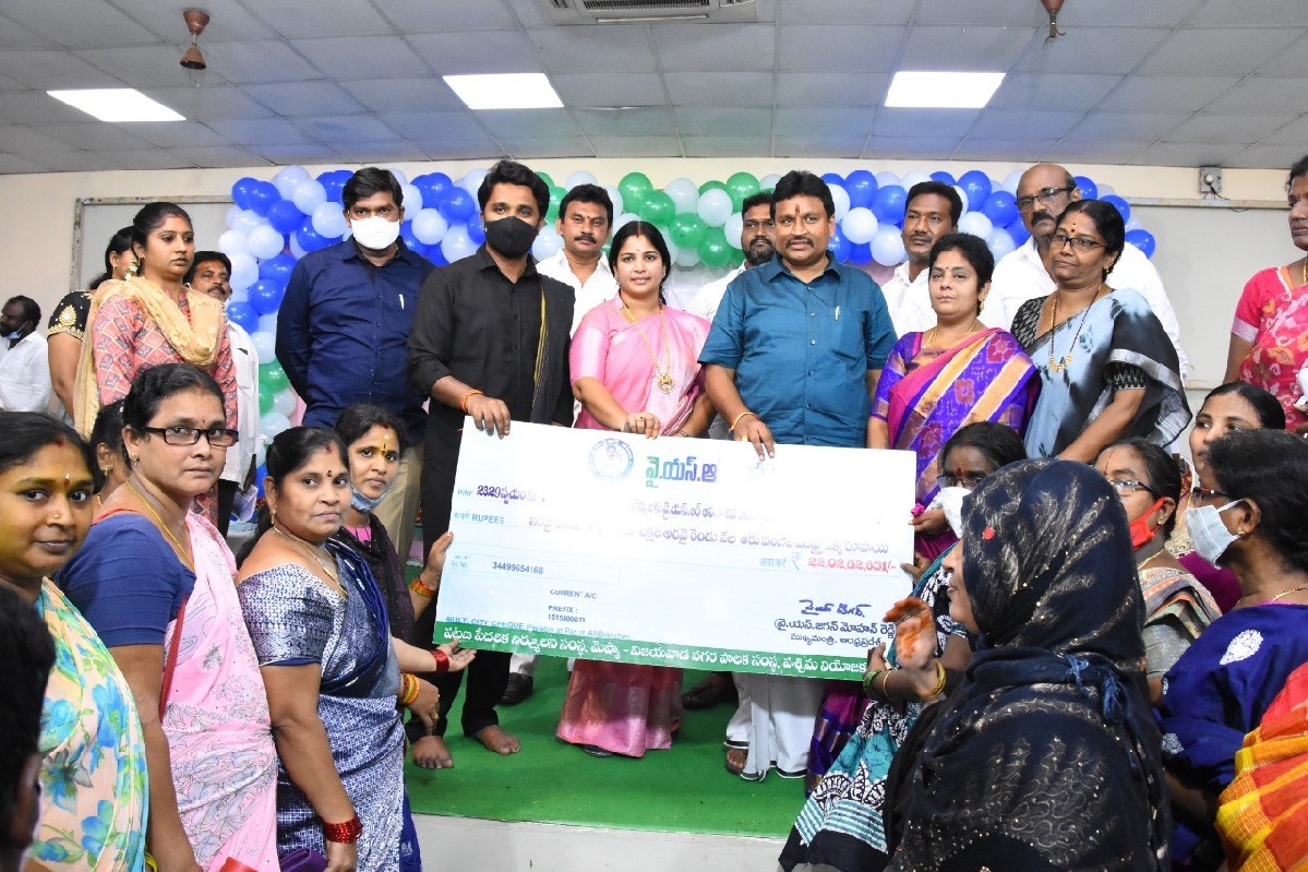 అదే విధంగా సెంట్రల్ నియోజక వర్గంలోని 31, 33 మరియు 36 డివిజన్ లకు సంబందించి సత్యనారాయణ పురం AKTPM హైస్కూల్ నందు శాసన సభ్యుడు మల్లాది విష్ణువర్ధన్, డిప్యూటీ మేయర్ అవుతు శ్రీశైలజారెడ్డి, స్థానిక కార్పొరేటర్లు మరియు కోఆప్షన్ సభ్యులు పాల్గొన్నారు. వై.ఎస్.ఆర్ ఆసరా నందు లబ్ది పొందిన 289 గ్రూపులకు వారి రూ. 2,61,56,143/-రూపాయలు చెక్కును అందించుట జరిగింది.