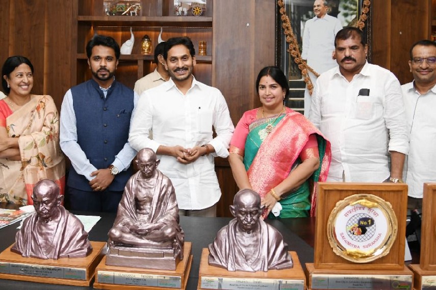 విజయవాడ: స్వచ్ఛ సర్వేక్షణ్ 2021లో విజయవాడ నగరపాలక సంస్థ జాతీయ స్థాయిలో మూడవ ఉత్తమ పరిశుభ్ర నగరంగా, చెత్త రహిత నగరంగా 5 స్టార్ రేటింగ్, వాటర్ ప్లస్ సిటీ, PrerakDauur Samman Award - Gold (Anupam)లను సాదించి రాష్ట్రపతి రామ్ నాథ్ కోవింద్ చేతుల మీదుగా అవార్డు స్వీకరించుట జరిగింది. ఈ విజయాన్ని పురస్కరించుకొని గురువారం రాష్ట్ర పురపాలక మరియు పట్టణాభివృద్ది శాఖ స్పెషల్ చీఫ్ సెక్రటరీ వై.శ్రీలక్ష్మి, కమిషనర్ మరియు సంచాలకులు మునిసిపల్ అడ్మినిస్ట్రేషన్ యం.యం నాయక్ లతో కలసి విజయవాడ నగర మేయర్ రాయన భాగ్యలక్ష్మి, నగర కమిషనర్ ప్రసన్న వెంకటేష్ మర్యాద పుర్వకంగా ముఖ్యమంత్రి వై.ఎస్.జగన్ మోహనరెడ్డిని మరియు మునిసిపల్ శాఖామంత్రి బొత్స సత్యనారాయణని కలసి అవార్డులను సాధించుటకు ఆయా రంగములలో నగరపాలక సంస్థ చేపట్టిన సంస్కరణలకు అందించిన సహకారములకు కృతజ్ఞతలు తెలిపారు.
