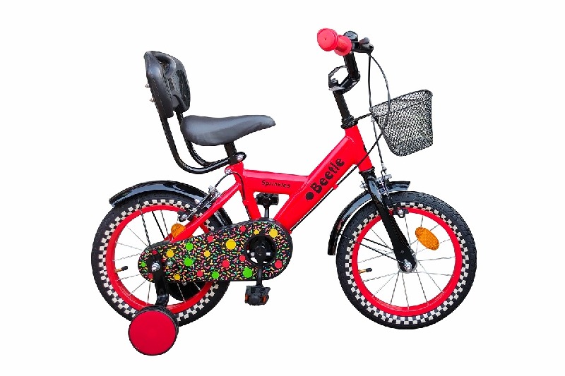 Like all other bikes in its portfolio Beetle Bikes has included striking decals on the Sprinkles as well. The coordinated decals run from the frame to the saddle and the mudguard. Recently Beetle Bikes extended the portfolio by adding cycling accessories like Kids Helmets, cycling bottles, and cycling lights.
